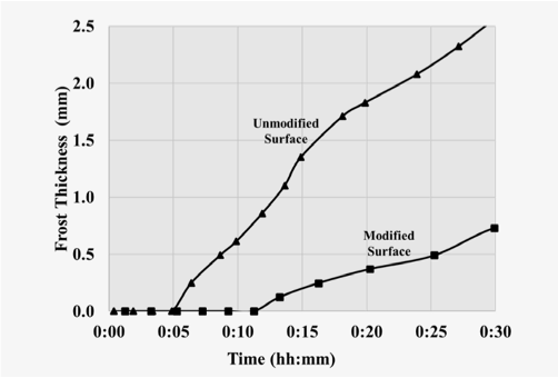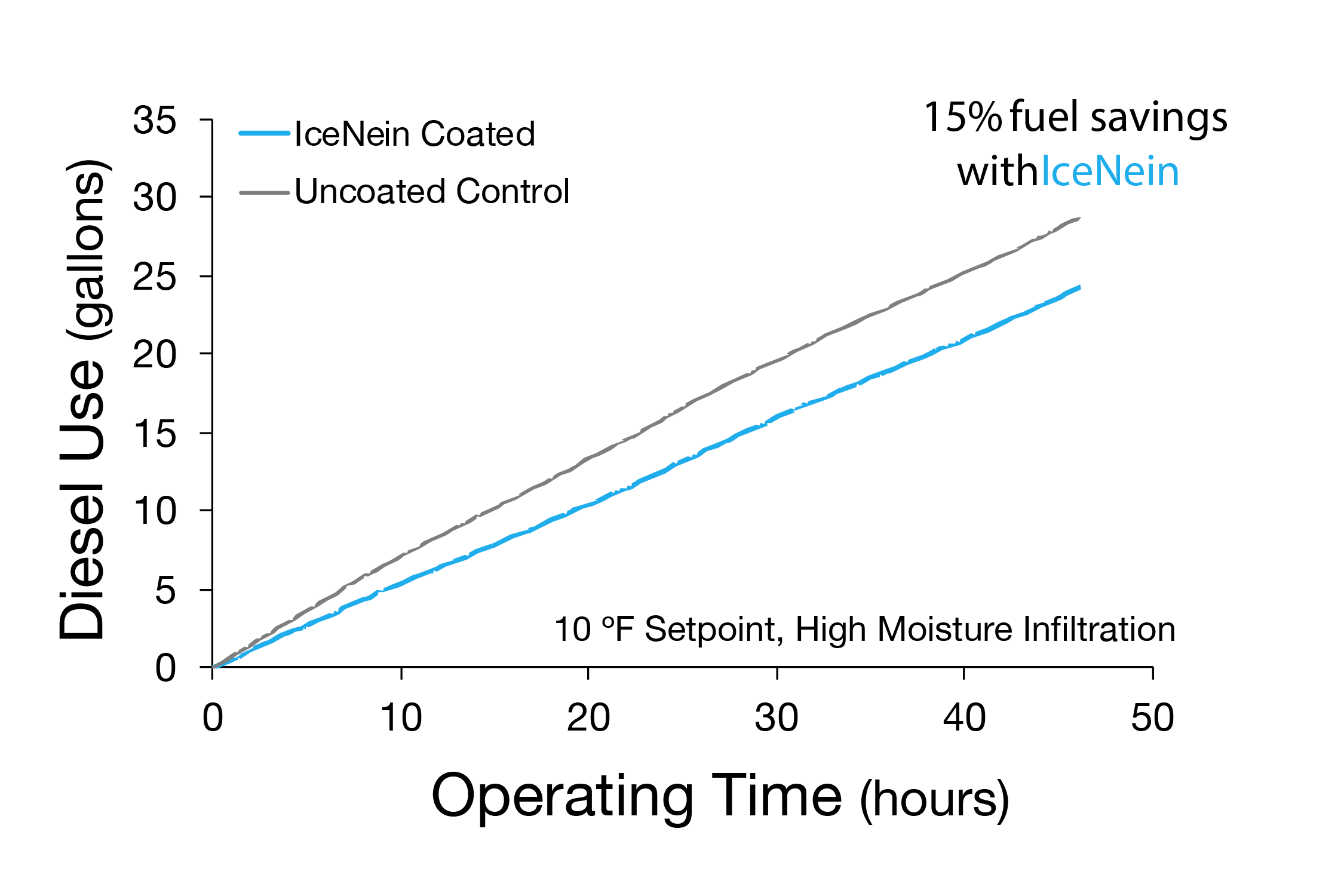 Third party tests have shown that IceNein™ coatings reduce the ice formation rate by 60%, reduce the defrost duration by 40%, and minimize entrained water in evaporator heat exchangers.